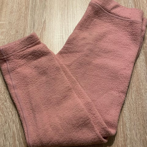 Skogstad ulltrøye i størrelse 110/116, laget av merinoull. Ulltrøyen har rosa farge med en lysere grå tone på albuepartiet. Plagget er egnet som undertøy eller mellomlag for barn.