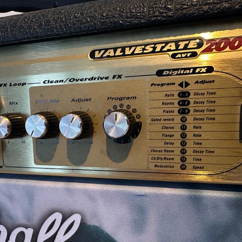 Toppen er transistor med vreng som minner mest om en Marshall. kabinettet er fra en Peavy Valve king, 12 tommer