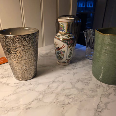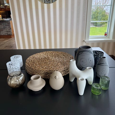 Hvite pyntegjenstander. Vase og diverse pyntegjenstander