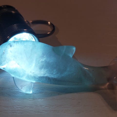 2 delfiner fra 80-tallet uten nag eller knaster. 16 cm høye og 11,5 cm i sokkelen. Selges for kr. 200,- pr. stk. + frakt