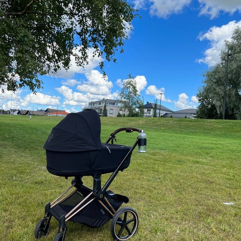 CYBEX barnevognsbag i grått stoff. Passer til bruk som tilbehør til barnevogn, med hette og glidelås for enkel tilgang. Som ny