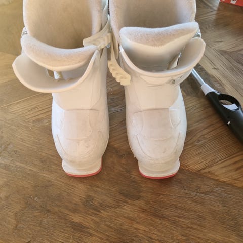 (Europeisk størrelse 28). Støvlene er svarte med rødt fôr og har justerbar stropp for god passform. Egnet for barn som trenger skistøvler til alpinski. Materialet er plast med polstret innside for komfort.