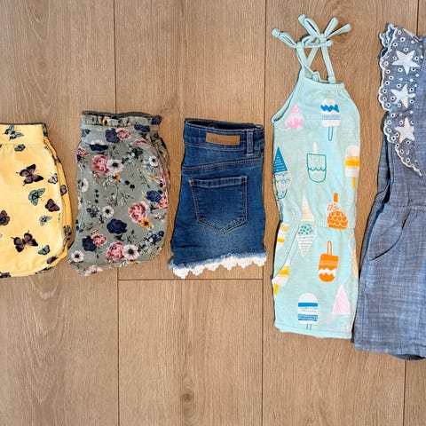 Liten klespakke i rosa-røde farger, str 98-104. Alt er i god stand.