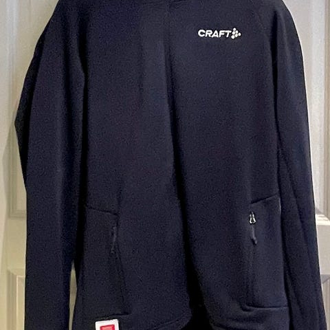 Størrelse M, svart med "SO WHAT IS NEXT?" print, hette, justerbare mansjetter.