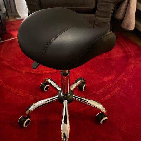 Sadelsetet kan justeres i både høyde og vinkel, og seteputen har spesiell polstring som brukes i helsevesenet for å forhindre liggesår. Flexsadel passer ypperlig for kontorbruk, på lager, for behandlere og i andre yrker som krever fleksibilitet og varierte arbeidsstillinger. Juster høyden slik at føttene har god kontakt med gulvet, og sitt rett på stolputen for optimal komfort.