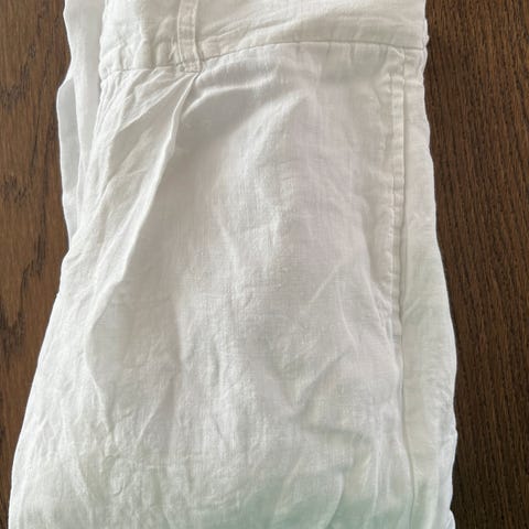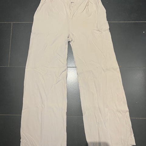Gina Tricot bukser i beige farge, laget av lin. Passer til dame i størrelse M. Bukser med elastisk midje og snøring for justering. den har brukbare lommer:)
