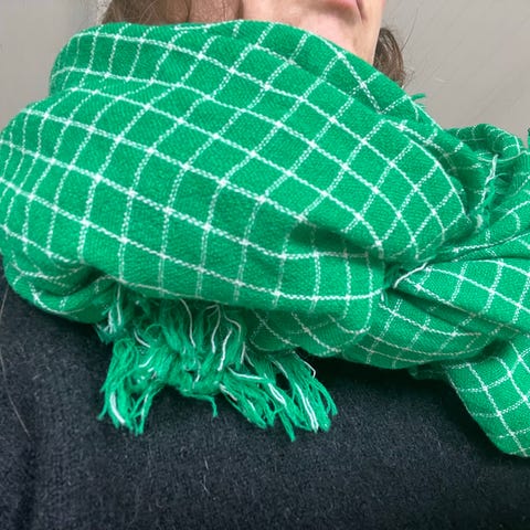 Skjerf i flerfarget design laget av ull. Materialblanding består av 55% ull og 45% bomull. Passer for kvinner, størrelse XL.
