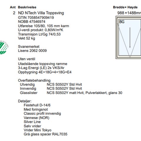 Størrelse 100x120cm - ytterkant karmmål 988x1188mm