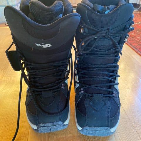 Burton snowboardstøvler. Støvlene har borrelås og snøring for justering. Sålen er laget for godt grep og stabilitet under snowboardkjøring.