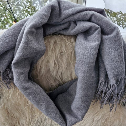 H&M skjerf i grå farge laget av akryl materiale. Størrelse one size, egnet for kvinner.