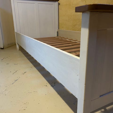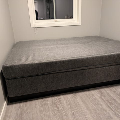 IKEA JÅRNUDDA seng med grått trekk