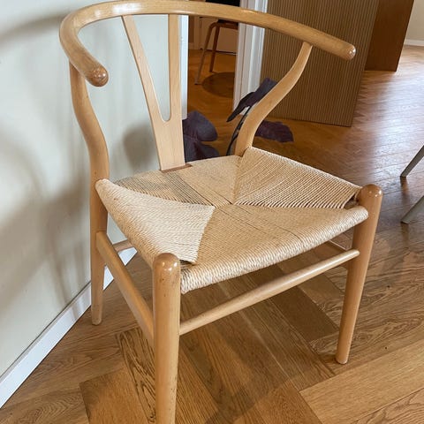 Godt brukte y stoler selges. Dette er en kopi som man ikke lenger får tak i. Ser helt lik ut originalen. Slitt på kanten på armlene og noen hakk her og der.. 1500 per stol. Har 5 stk. kan hentes 4. februar