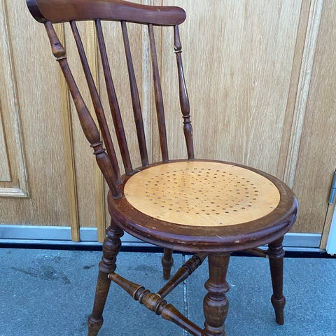 Jeg selger 4 vintage stoler kjøpt på finn for noen år tilbake. De er i veldig god stand, har limt dem her og der men kan hende de trengs å limes smått på nytt. 4 stykker for 150 hver. De er små ulikheter på stolene med farge design på sitteplaten, men ser veldig fine ut sammen. Siifra hvis du trenger flere bilder av alle individuelt:)