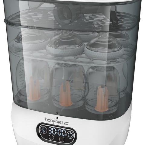 Baby Brezza SuperFast dampsterilisator og tørker BRZ0083 steriliserer babyflasker, brystpumper, smokker, biteringer, og annet tilbehør. Sterilisatoren er BPA-fri, har plass til seks flasker, og har fire innstillinger.
