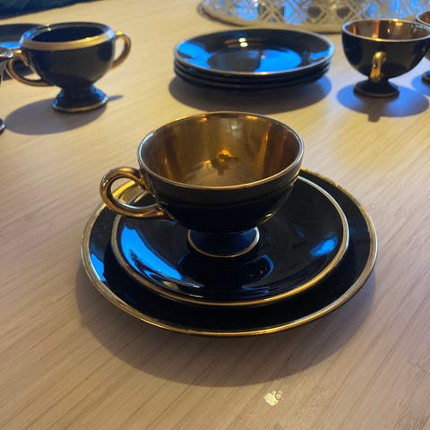 Et flott sett som de fleste kan huske fra bestemors hus.