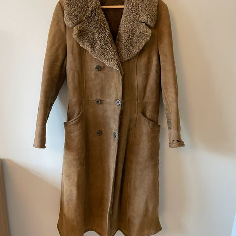 Semsket skinn kåpe med detaljer i glatt skinn.