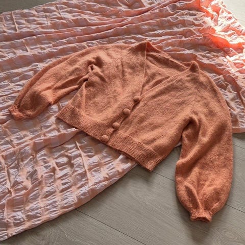 Nydelig hjemmestrikket genser /cardigan i 100% ull.