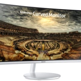 34 tommer buet skjerm med bred visningsvinkel, egnet for arbeidsstasjon eller underholdning. Skjermen har et moderne design med svart ramme og er plassert på et skrivebord i et rom med naturlig lys.