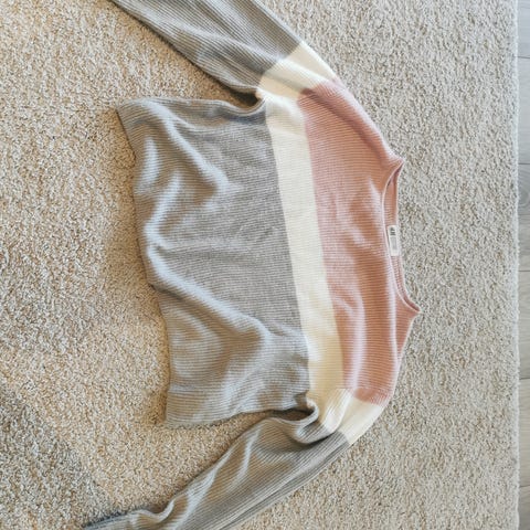 H&M genser for jente i størrelse 12-14 år. Genseren er hvit/ beige melert med flerfargede paljetter rundt halsen. Laget av polyamid. Passer til vanlig bruk for barn i denne størrelsen.