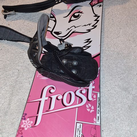 Shaun Palmer var stor på 90 tallet. Brettet ikke benyttet på ca 25 år. Ble glidet og preppet i 2025 (verdi 1200,-), benyttet en gang etter det. Bindinger medfølger. Er en del turer igjen på brettet.