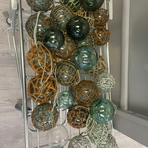 Dekorative garnkuler i grønne fargetoner. Kulene kommer i flere ulike størrelser (2 mellomstore og 3 små )og har blank overflate. Egner seg som pynt på bord, i skåler eller som del av annen interiørdekorasjon i hjemmet, i naustet eller på hytta.