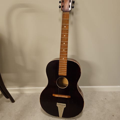 Gitaren selges derfor som defect / reparasjonsobjekt / for deler.