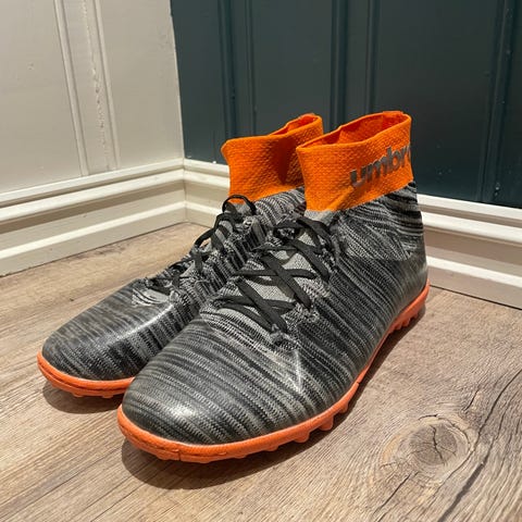 Nike Phantom fotballsko i blå og hvit i str 36,5. Skoene har knotter på undersiden for bruk på gress/kunstgress. Skoene er brukt en sesong, men har mye igjen.