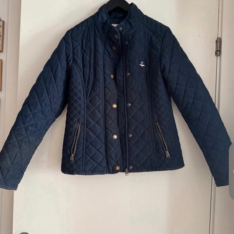Hampton Republic Quilted jakke i blå farge, størrelse 158 . Jakken har quiltet mønster og både glidelås og knappelukking foran. Egnet for bruk som ytterplagg i kjøligere vær.