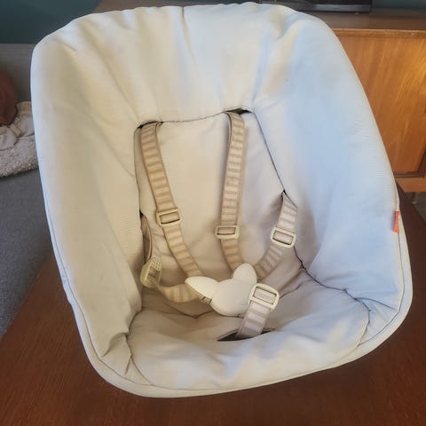 Lyst tre er av nyere modell som passer utstyr som newborn sete og baby stol sett. Pris kr 950.