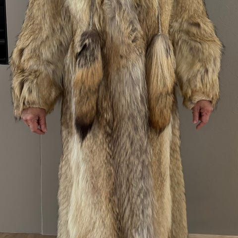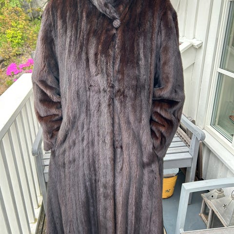PelsKåpe, brun farge, størrelse S /XS designet for dame, kan prøves, fra familie på Hamar, men har en til som er litt større. Denne er trolig str 36/38 kort i ermene ellers romslig (38) Mener d er mink, skal se om jeg kan få den taksert. Veldig liten slitasje på ermer.
