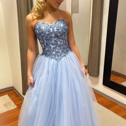 Ballkjole brukt en gang. Personen som har den på er 167 cm. Kjolen vil nok passe personer som er xs- M da det er korsett.