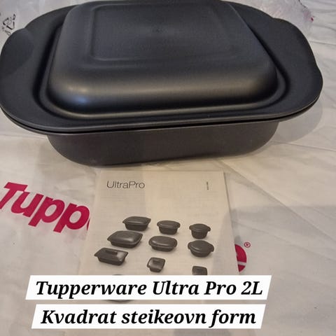 Tupperware Ultra Pro Rund sett med 2 stk ovnfaste former, 1,5L+ 2,5L med 1 lokk som passer begge formene. Tåler fra ÷25 til +250 grader C. Ikke grillelement!. Holder maten saftig og god, hindrer at ovnen blir fettet med lokket på. Kan brukes både i steikeovn og Micro.