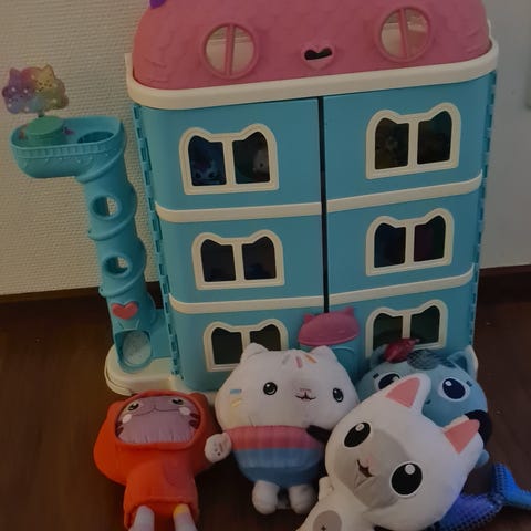 Gabby lekehus med flere etasjer og fargerikt design. Lekehuset har dører som kan åpnes og er egnet for barn. Laget i plastmateriale.