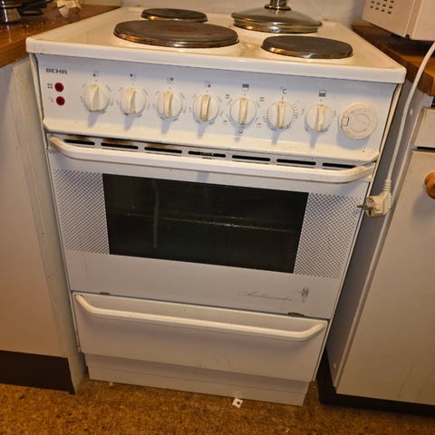 Gorenje induksjon komfyr med fire kokeplater og ovn. Komfyren har en hvit farge og betjenes med knotter. Egnet for bruk i kjøkken for matlaging med induksjonsteknologi. Alle plater fingrer bra men den stor plater kunne fingere med høye grader.