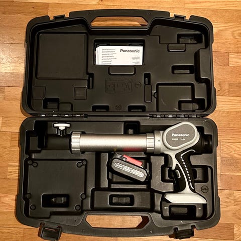 Panasonic fugepistol med hurtiglader og nytt batteri.