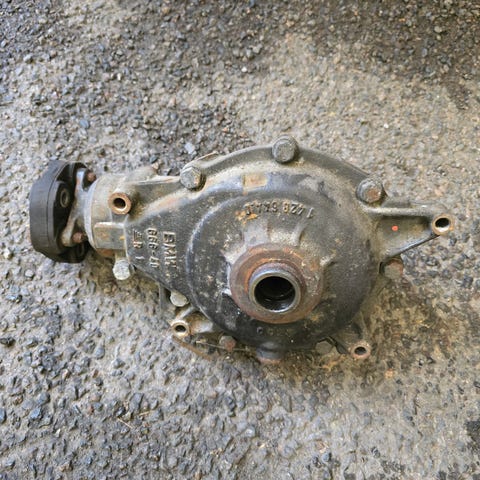 BMW motor, brukt bilmotor med diverse tilkoblinger og komponenter, egnet for reparasjon eller reservedel.