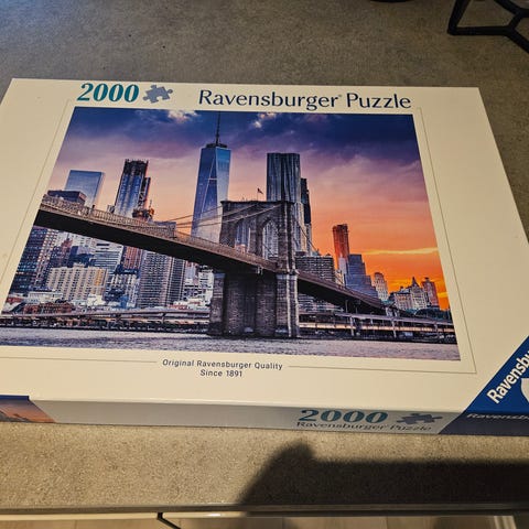Bluebird Puzzle Puslespill med 1000 brikker. Kun lagt én gang, pent brukt og som ny. Er bare esken som har fått seg en liten skramme (se bildet).