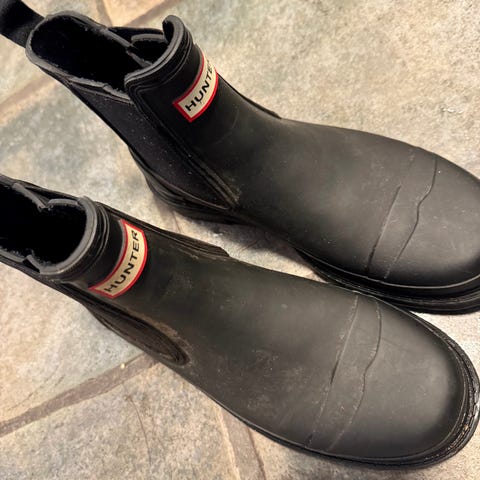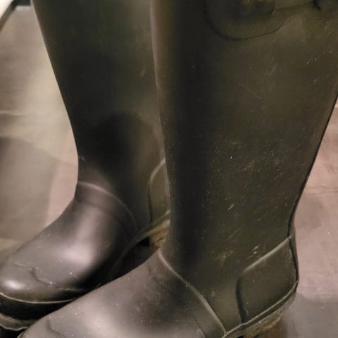 Hunter regnstøvler i størrelse 39, farge svart. Støvlene er laget av vanntett materiale og er designet for å beskytte føttene mot vått vær. Helt ny, prøvd på en gang.