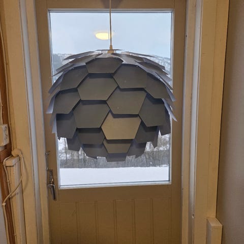 Den er designet for å gi et jevnt, mykt lys og det følger med fin lyspæreboble som dekker lyspæren.