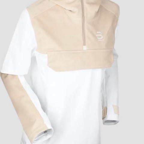 Jakke med fine detaljer, fuskepels rundt hetten, snøstopper og lommer.