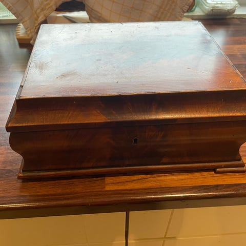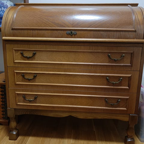 Culliford &Barrow spinett i tre, som er bygget om til skrivebord