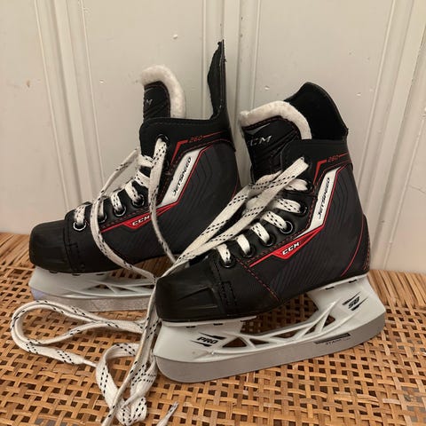 Ishockey skøyter for barn i størrelse 29. Skøytene har svart og grå farge med grønne detaljer. Designet for ishockeybruk.