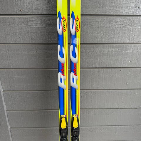 Fischer og Atomic langrennsski i ulike modeller og farger. Skiene har tradisjonelle bindinger og er egnet for klassisk og skøyting. Materiale og størrelse varierer mellom modellene.