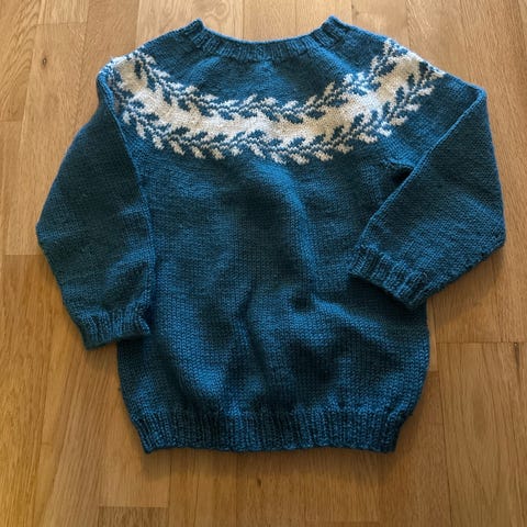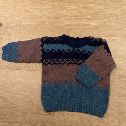 Hjemmestrikket barnegenser ull flerfarget størrelse 116 jente