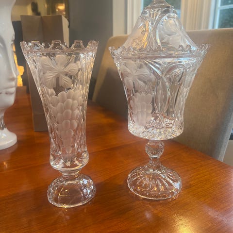 2 fine krystall vaser selges. 350,- pr dtk.