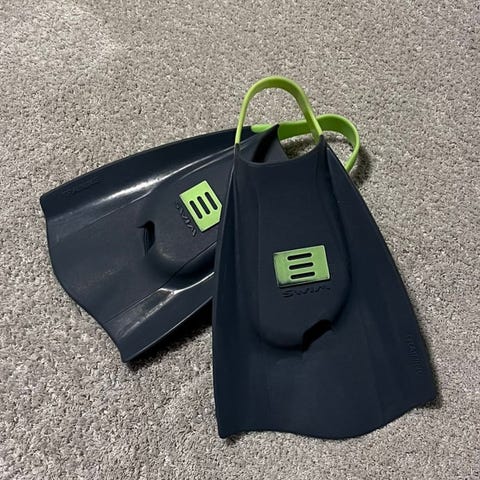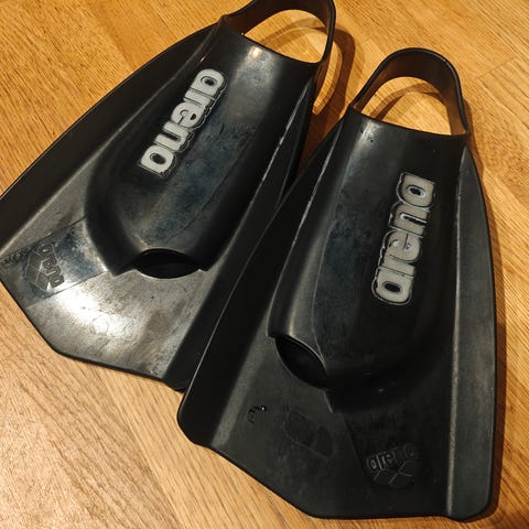 Veldig pent brukte Arena svømmeføtter i grønn farge, størrelse EU 40-41, tilsvarende USA 8-9, UK 6.5-7.5, AUS 6.5-7.5. Laget for bruk ved svømmetrening eller vannaktiviteter.
