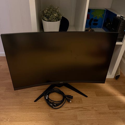 AOC Gaming 34" skjerm med buet design, oppløsning 3440x1440, oppdateringsfrekvens 100 Hz, 1 ms responstid og HDR400-støtte selges, meget pent brukt skjerm, ingen feil eller mangler.