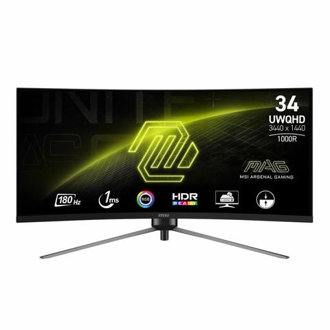 AOC Gaming 34" skjerm med buet design, oppløsning 3440x1440, oppdateringsfrekvens 180 Hz, 1 ms responstid og HDR400-støtte selges, meget pent brukt skjerm, ingen feil eller mangler.