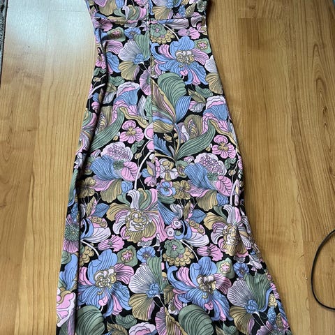 Kjempefin vintage kjole fra Gina Bacconi selges fordi den dessverre ble for stor for meg. Den er i en fin rød korallaktig farge. Bygd inn bh i overdel. Glidelås på siden.