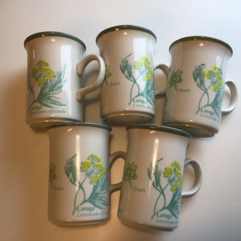 Kuverter med kopp, skål og asjett. Jeg har 12 stykk, disse er fra 50-tallet men er i perfekt stand.